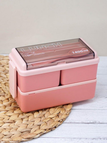 Ланчбокс "Big life", pink (ложка+вилка), 1400 мл