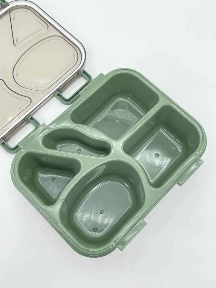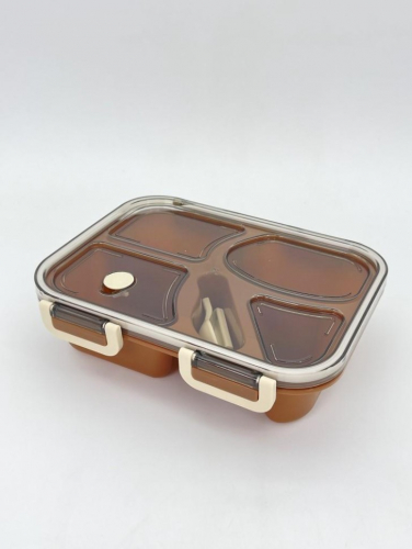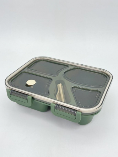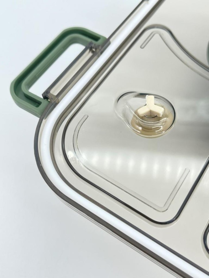 Состоит из 1 яруса с четыремя отсеками и отделением для столовых приборов. Герметичная крышка с резиновым уплотнителем оснащена клапаном для выпуска пара.