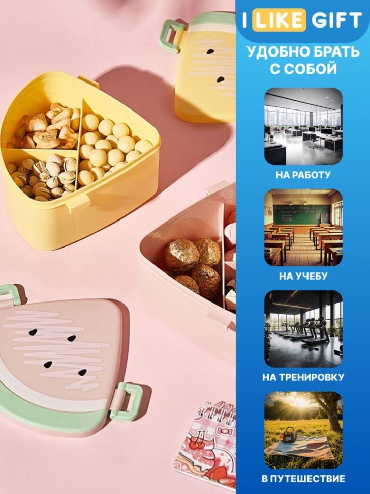 Ланч-бокс идеально подходит для использования на работе в офисе, во время, пикника, учебы в школе, спорта.