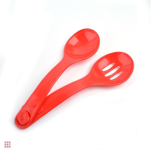 Набор из двух ложек для салата изготовлен из качественного цветного пластика. Такими ложками удобно перемешивать ингредиенты салата и перекладывать их из тарелки в тарелку.
