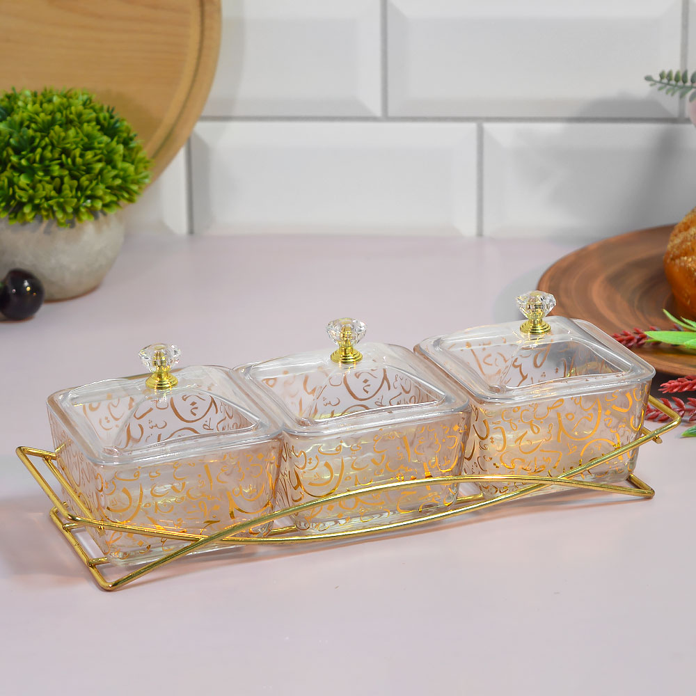 Менажница 3-х секционная 27,5*9,5*8,5см на металлической подставке, 9188