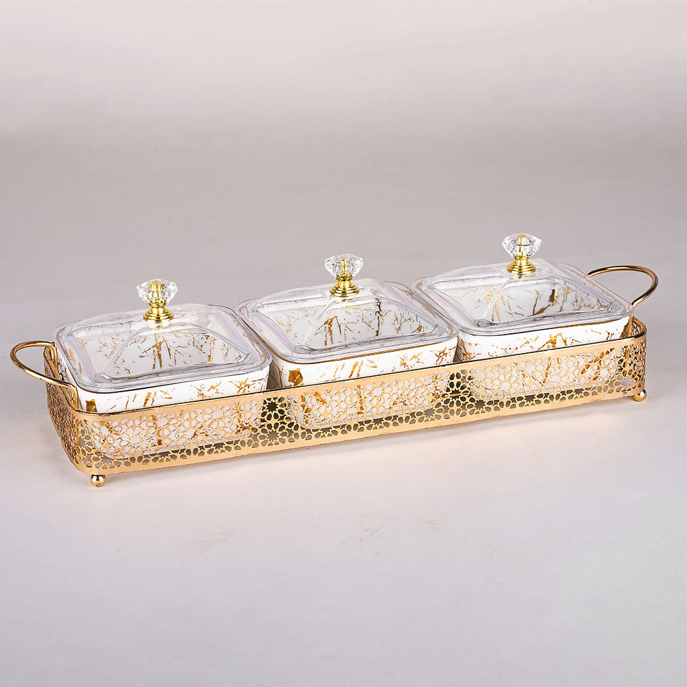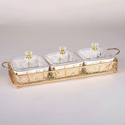Менажница 3-х секционная на подставке, 9,5*28*8см