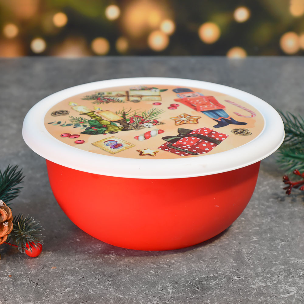 Миска 1,2л с крышкой "Modena. Игрушки", цвет красный