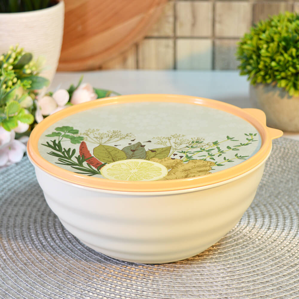 Миска 1,55л с крышкой, с декором "Wave", светло-серый