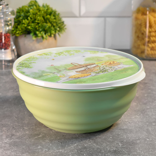 Миска 2,1л с крышкой "Latina" с декором, зеленый