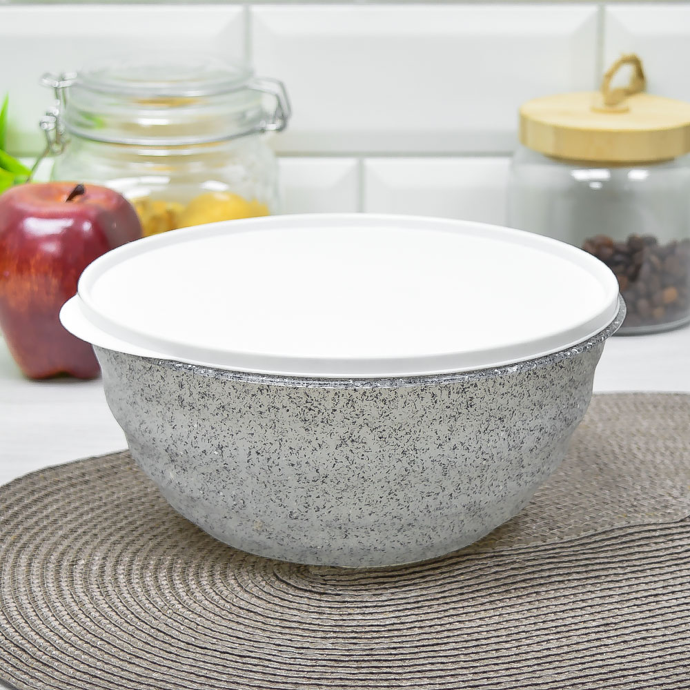 Миска 2,1л с крышкой "Latina", гранит светло-серый