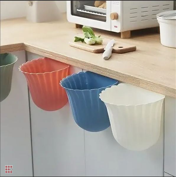 Прекрасной альтернативой громоздким мусорным бакам и ведрам является небольшая корзина с креплением на дверцу кухонного шкафчика. Это открытый пластиковый контейнер для отходов изогнутой формы, напоминающей цветок. Невероятно удобно использовать маленькое мусорное ведерко, которое будет всегда под рукой.