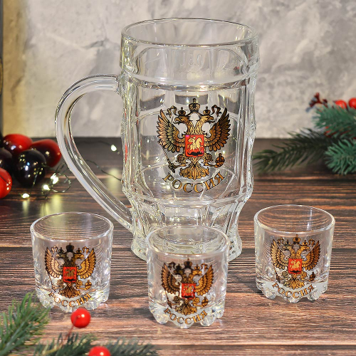 Набор 4 предмета (3 стопки 50мл, кружка для пива 500мл) Приколы
