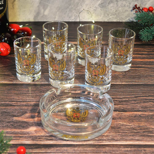 Набор 7 предметов (6 стопок 50мл, пепельница) Герб России