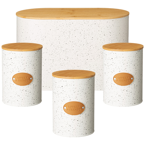 Хлебница и банки для сыпучих продуктов являются частью системы хранения в доме.