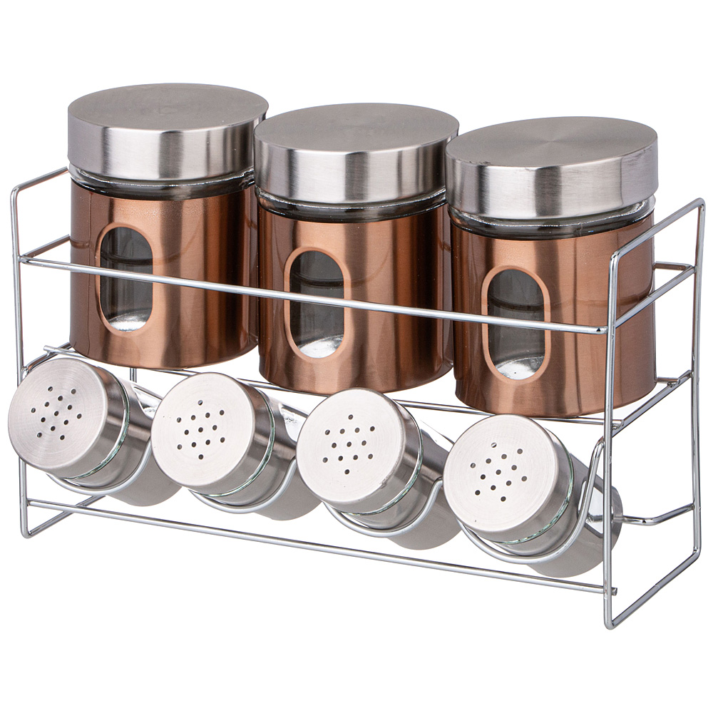 Банки для специй на подставке - это удобный и практичный способ хранения и организации специй на вашей кухне, они отлично дополнят Ваш набор посуды. Оригинальная металлическая подставка сделает хранение баночек более удобным. Гермитичные крышки сохранят неповторимый аромат Ваших любимых специй.