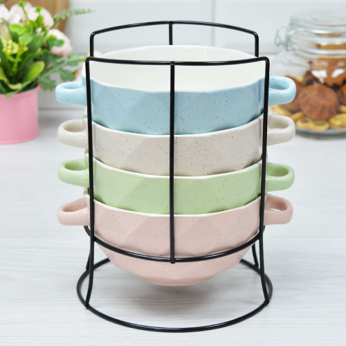 Набор бульонниц 4 предмета 650мл на подставке "Золотая линия", 202357