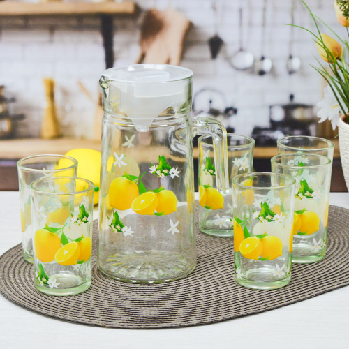 Набор для напитков 7 предметов (кувшин, 6 стаканов) "Лимон"