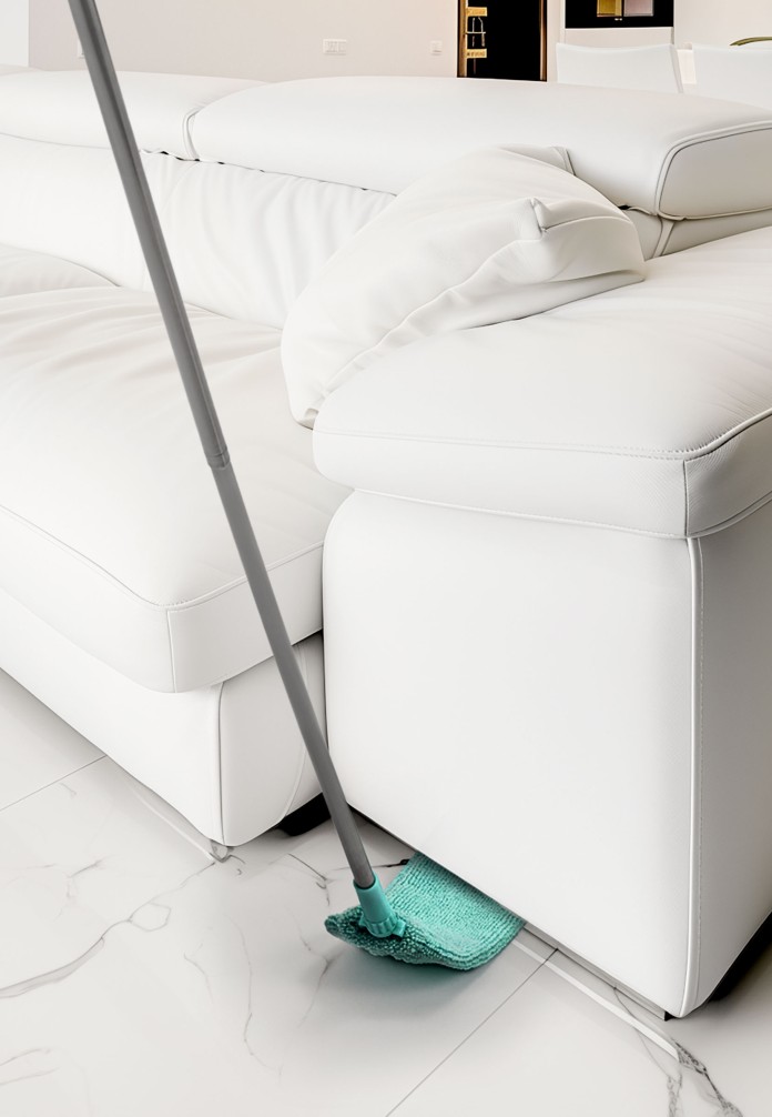 Подходит для сухой и влажной уборки, легко моется и быстро сохнет