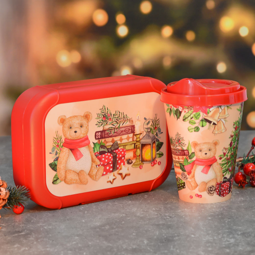 Набор "Игрушки" 2 предмета: ланч-бокс 0,85л, стакан 420мл с крышкой, цвет красный