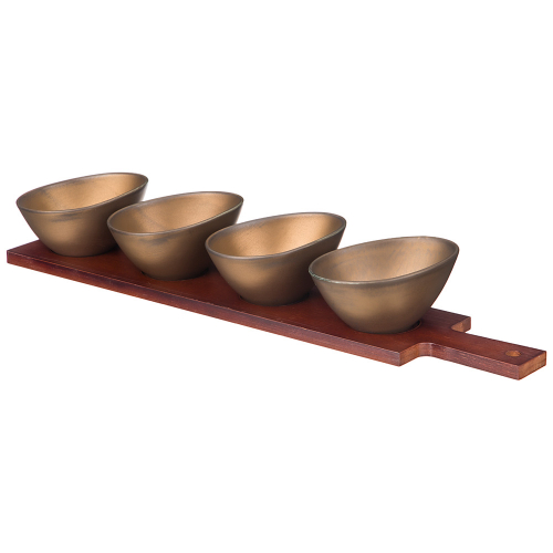 НАБОР ИЗ 4 САЛАТНИКОВ BRONCO "BRONZE"11*9*6 СМ НА ДЕР.ПОДСТАВКЕ С РУЧКОЙ 47*9,5*1 СМ (КОР=12НАБ.)