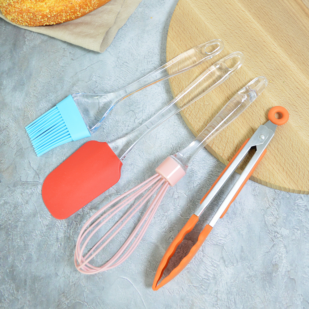 Набор кухонных принадлежностей из силикона, 4 предмета: кисточка 22*4,6см, ложка 25*5см, венчик