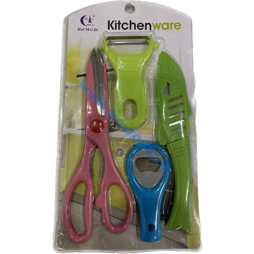 Набор кухонный "Kitchen ware" 4пр. (ножницы+нож+открывалка+овощечистка) №516