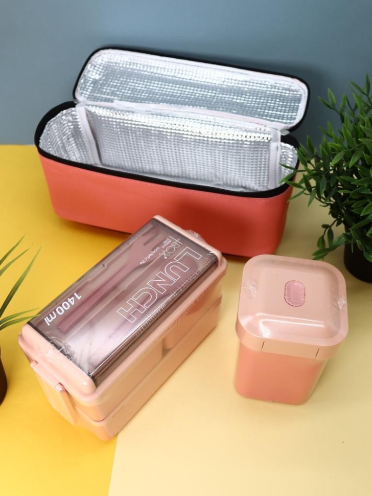 В комплекте идёт стильная термосумка. Каждый ланчбокс упакован в индивидуаьную полиэтиленовую пленку, поставляются внутри термосумки, весь комплект также упакован в плотную полиэтиленовую пленку. Размер комплекта в упаковке: 12,5 х 30,5 х 11 см. Общий вес: 594 гр.