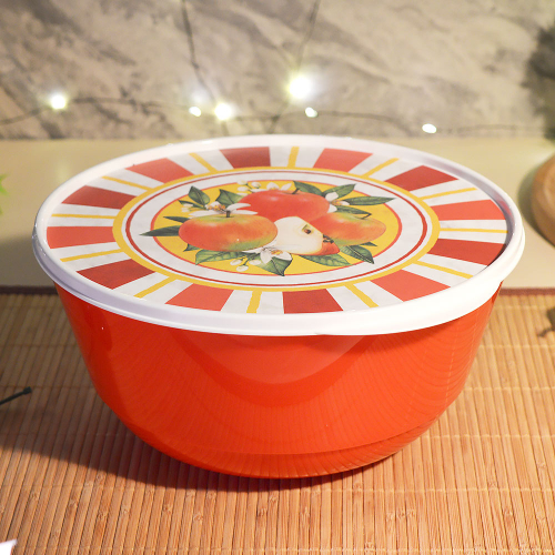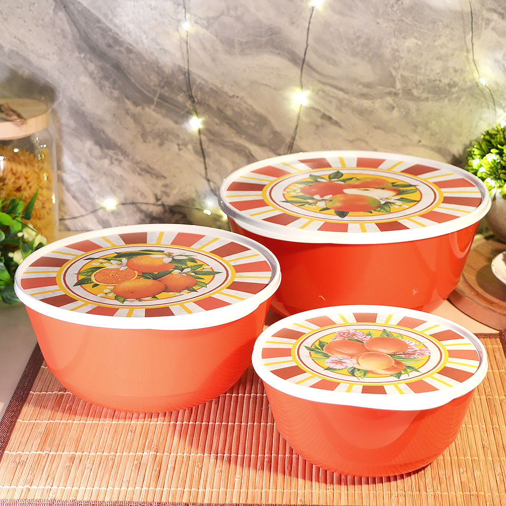 Набор мисок 3шт (1л, 2л, 3л) с крышками "Bergamo" с декором "Сицилия", цвет красный