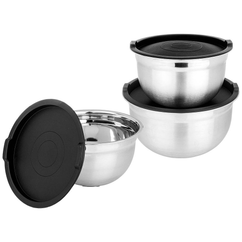 Прочные и компактные миски выполнены из нержавеющей стали, крышки - из полимерных материалов.