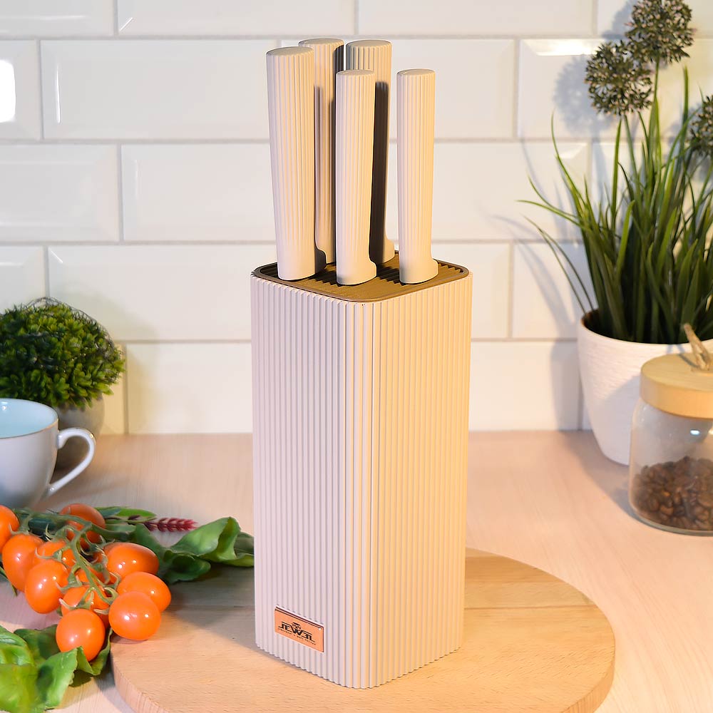 Набор ножей 6 предметов на подставке, цвет бежевый, Jewel