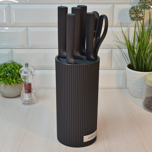 Набор ножей 7 предметов на подставке, цвет черный, Jewel