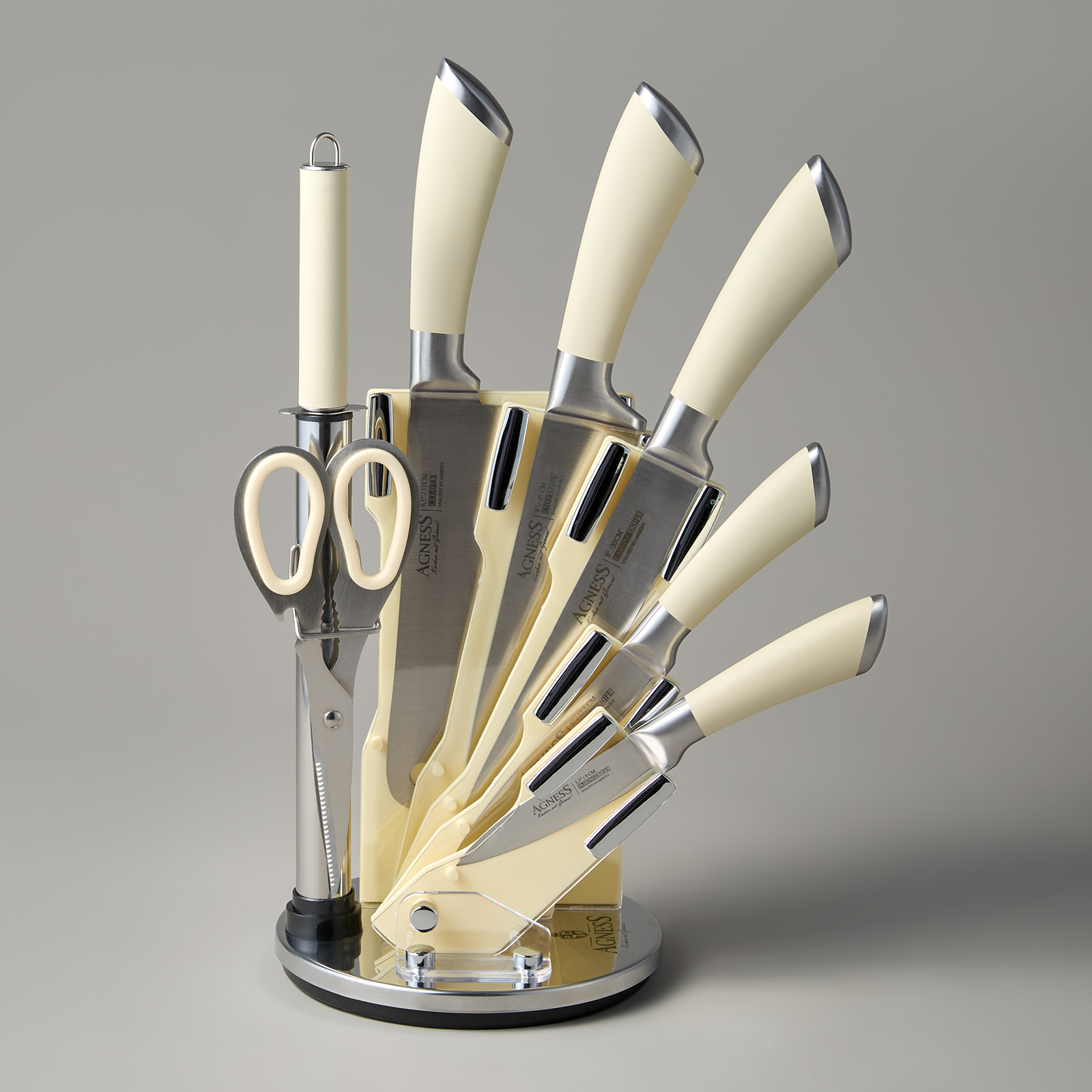 НАБОР НОЖЕЙ AGNESS НЖС НА ПЛАСТИКОВОЙ ВРАЩАЮЩЕЙСЯ ПОДСТАВКЕ 8 ПР. (КОР=6НАБОР.)