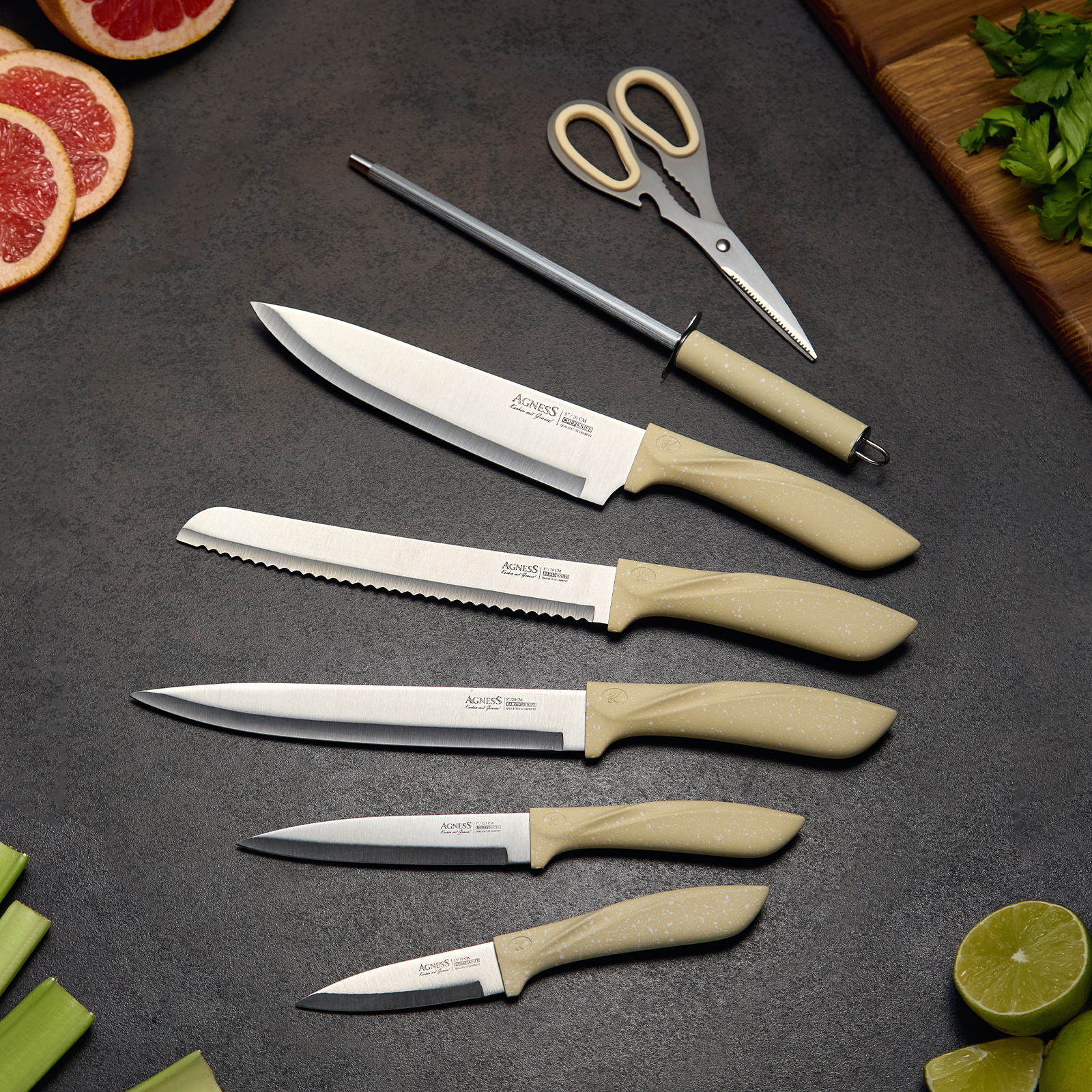 Нож - главный инструмент на кухне, а вернее ножи, т.к. даже самый лучший нож не сможет справиться со всем многообразием задач. Выбирая набор ножей AGNESS - Вы приобретаете комплект самых необходимых и чаще всего используемых ножей. Преимущества ножей AGNESS: