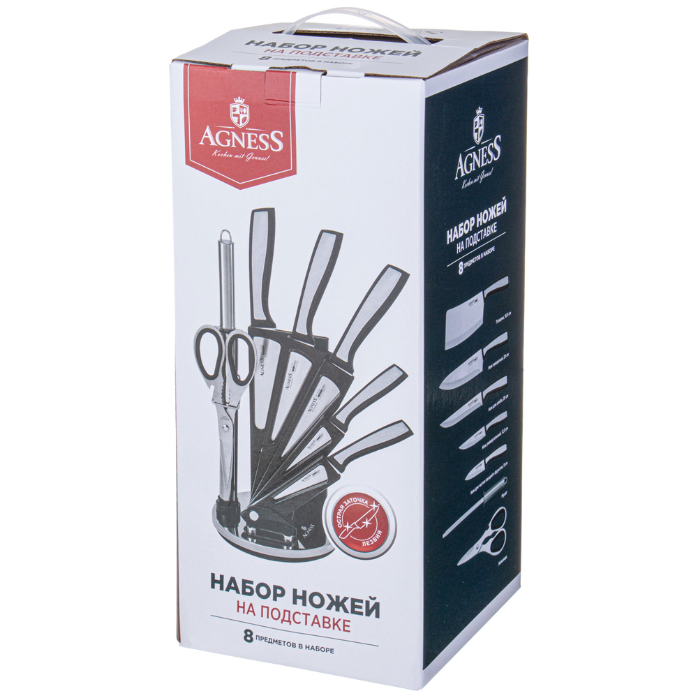 Нож - главный инструмент на кухне, а вернее ножи, т.к. даже самый лучший нож не сможет справиться со всем многообразием задач. Выбирая набор ножей AGNESS - Вы приобретаете комплект самых необходимых и чаще всего используемых ножей. Преимущества ножей AGNESS: