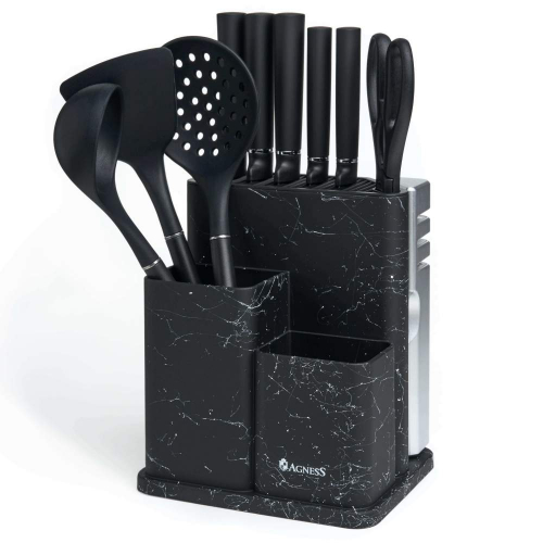 Набор ножей и кухонных принадлежностей 11 предметов, цвет мрамор