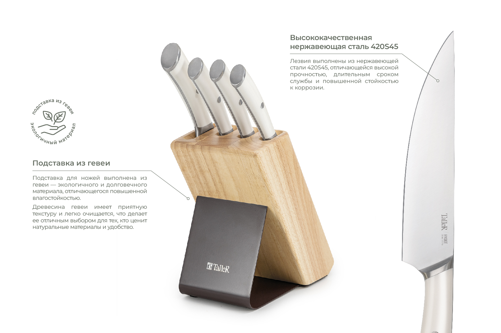 Набор ножей TalleR TR-22015 «Хюгге» 4 ножа и подставка