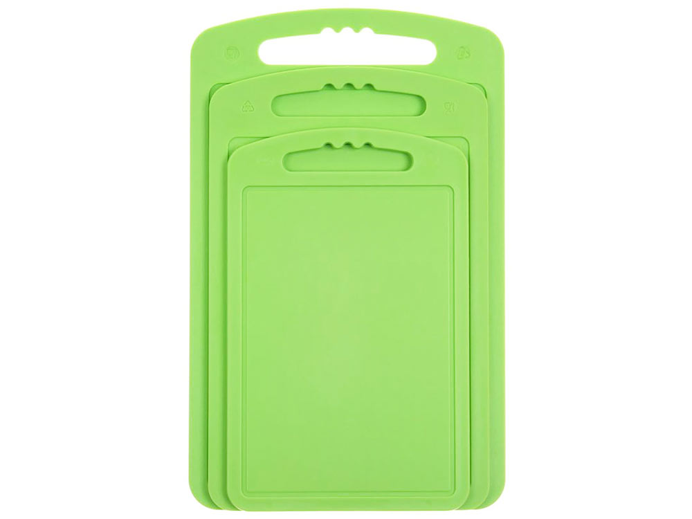 Набор разделочных досок 3шт• доски удобно использовать для различных видов продуктов• текстурированная матовая поверхность защищает от образования царапин, скольжения и не тупит лезвие ножа• доски легко мыть, в том числе в посудомоечной машине, они не впитывают запахи и не окрашиваются от продуктов• в набор входят 3 доски из прочного полипропилена:большая 20х32 смсредняя 18х28 сммалая 15х24 смЗаключаем договора по 44 ФЗ, 223 ФЗ