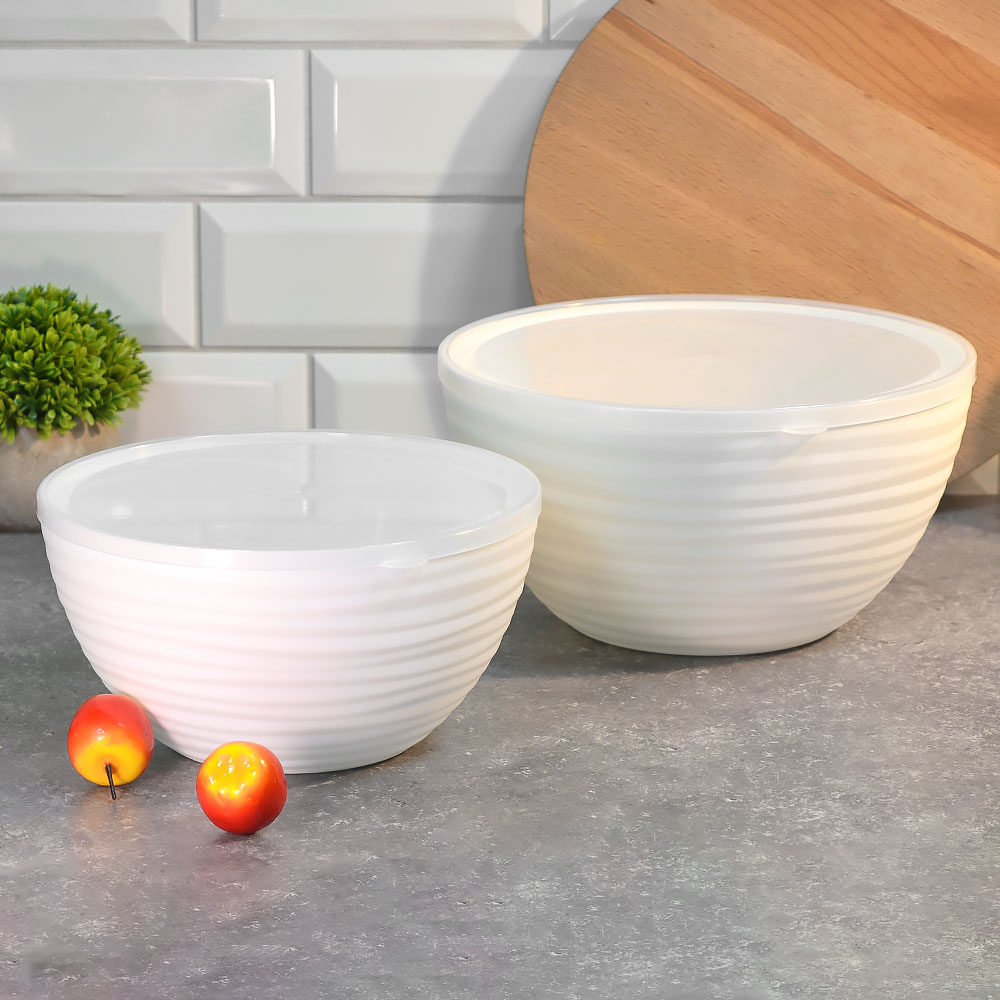 Набор салатников (2,5л, 4л) с крышкой "Оазис", белый