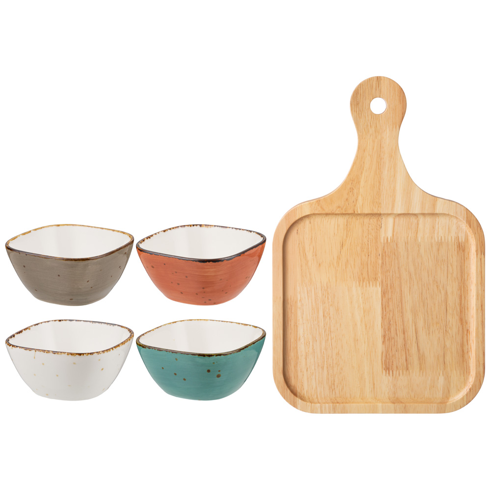 НАБОР САЛАТНИКОВ НА ДЕРЕВ. ПОДСТАВКЕ BRONCO "NATURE" 5 ПРЕДМЕТОВ (КОР=16НАБ.)