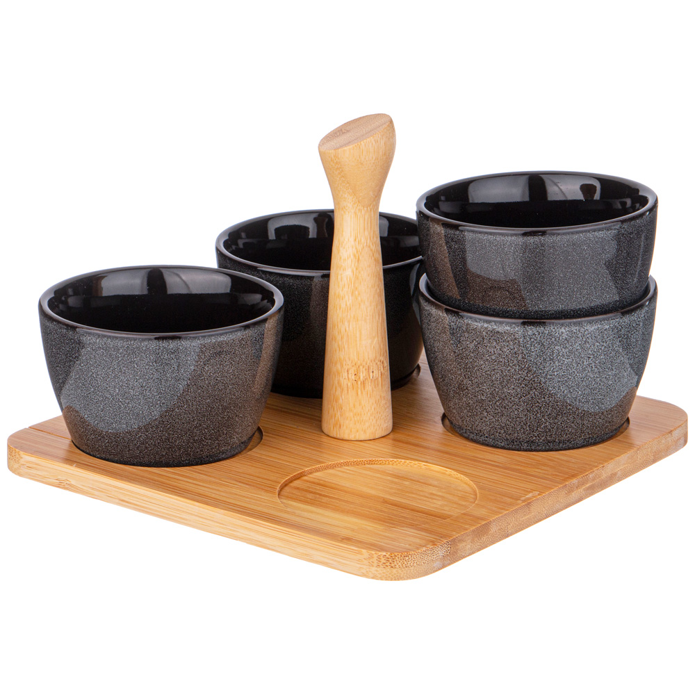 НАБОР СОУСНИКОВ LEFARD "GRAPHITE" 4 ШТ. 175 МЛ 19*6.5 СМ НА ДЕР. ПОДСТАВКЕ С РУЧКОЙ (КОР=16НАБ.)