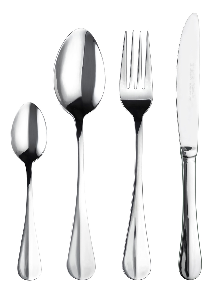 Столовые приборы (кроме лезвий ножей) изготовлены из высококачественной нержавеющей стали марки 18/10: