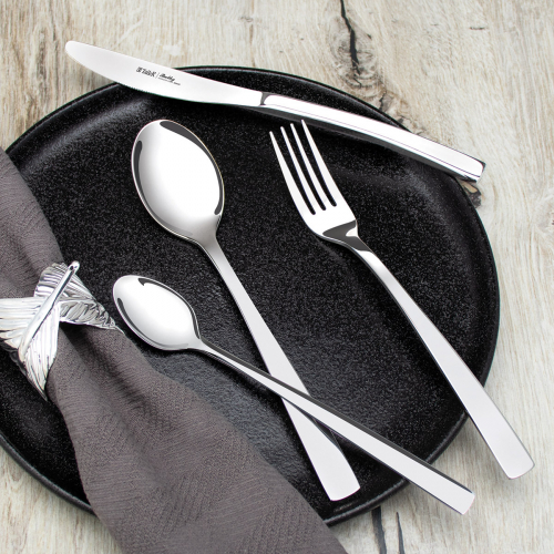 Идеальная обработка края приборов и высокое качество полировки. Классический дизайн набора придаст особое очарование сервировке стола даже в будничный день. Отлично сбалансированные ручки приборов позволяют приборам удобно ложиться в руку. Специальные утолщения на местах наибольшего износа приборов способствуют увеличению срока службы, препятствуют деформации.