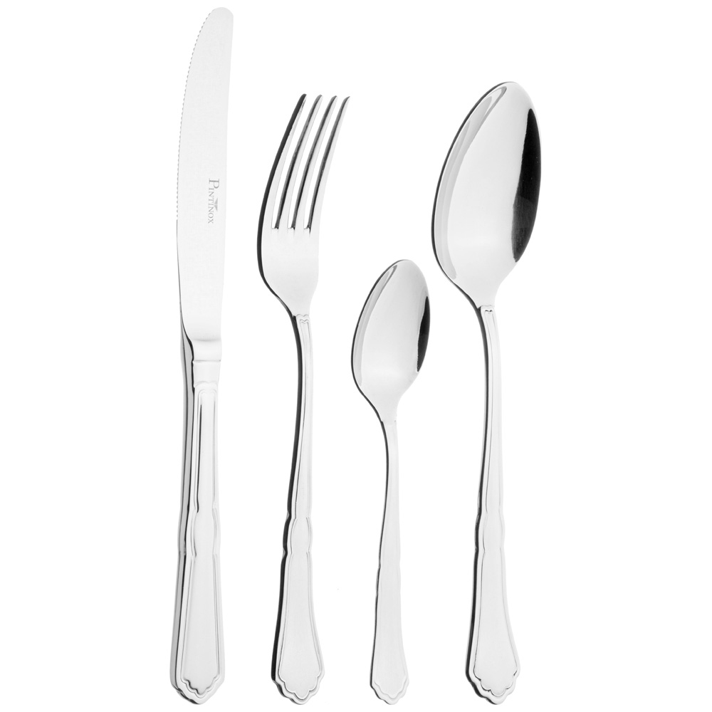 Столовые приборы Pintinox изготовлены из хромо-никелевой стали 18/10 (% хром-никель) толщиной 3мм. Эта сталь не содержит вредных примесей и устойчива к коррозии. Столовые приборы Pintinox идеально отполированы, что позволяет сохранять длительный срок эксплуатации. Для продления срока службы ваших столовых приборов, необходимо уделить внимание уходу за ними: после использования столовые приборы обязательно надо помыть и протереть насухо. Продукция Pintinox отличается безупречностью исполнения, высоким качеством изготовления, оригинальностью и неповторимостью дизайна.