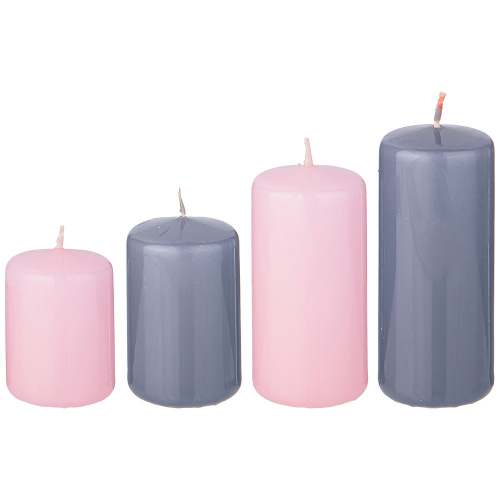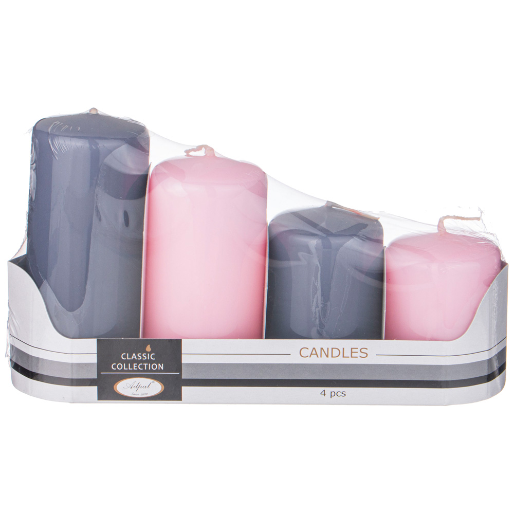 НАБОР СВЕЧЕЙ ADPAL ИЗ 4 ШТ 7/8/10/12*5 СМ СЕРЫЙ И ЛАВАНДОВЫЙ