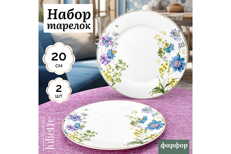 Набор из двух тарелок для закуски Elan Gallery "Juliette" станет украшением вашей кухни. "Juliette" — это коллекция посуды из высококачественного фарфора new bone china с изящным цветочным рисунком и золотым окаймлением. Серия вдохновлена атмосферой очарования французской провинции и переносит нас в загадочный сад. Размер каждой тарелки – 20,5х20,5х1,5 см. Тарелочки для подачи на стол ваших любимых блюд станут незаменимой вещью в любом доме. Набор отлично подойдёт для любых закусок, например, фруктов или нарезки. Каждая тарелка станет незаменимым помощником при сервировке завтрака, ужина или вторых блюд на обед. Разместите на них колбасу, сыр или любой десерт. Фарфоровая посуда отличается от керамики повышенной плотностью. Фарфор не впитывает цвет продуктов и не деформируется от влаги, чему может быть подвержена керамическая посуда. Универсальный набор подойдёт для сервировки стола не только в будни, но и на праздник. Из-за золотого окаймления не подходит для использования в микроволновой печи и посудомоечной машине. Поставляется в подарочной картонной упаковке. Станет отличным подарком для любой хозяйки, которая ценит стильную сервировку. Серия "Juliette" пробуждает романтическое воображение и поможет создать неповторимую атмосферу на любой кухне! /