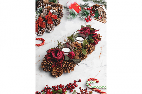 Новогоднее украшение-подсвечник «Зимняя вишня» от бренда Elan Gallery на 2 свечи станет изящным дополнением вашего интерьера. Размер изделия – 33х15х8 см, диаметр каждого подсвечника – 3,5 см. Глубокие ёмкости выполнены в форме классической чашечки и подойдут как для чайных свечей, так и для свечей-столбиков. Высокие стенки не допустят протечки воска. Необычное декоративное изделие представляет собой композицию из еловых веточек, шишек и искусственных ягод. Мы создали коллекцию новогодних и рождественских товаров для сервировки и декора, которые наполнят пространство атмосферой уюта. Изделия помогут оформить интерьер праздничными композициями и добавят нотку зимнего волшебства. Поставьте подсвечник на стол, полку или подоконник, чтобы оно всегда было на виду и радовало глаз. Сделайте частью праздничного стола, чтобы привнести ощущение чуда. Зажгите свечу и насладитесь неторопливым вечером в компании книг, фильма или душистого напитка, чтобы отдохнуть. Необычный элемент декора найдёт место в любой части вашей квартиры: в прихожей, гостиной, столовой или спальне. Это изящный и лёгкий способ добавить эстетики любому помещению. Поставляется в картонной коробке. В коллекции бренда Elan Gallery представлены посуда, сувениры и украшения с новогодней символикой. Каждый подберёт оригинальный сюрприз для семьи, друзей и коллег на Новый год и Рождество. Такой подарок наполнит дом семейным теплом и духом праздника! /