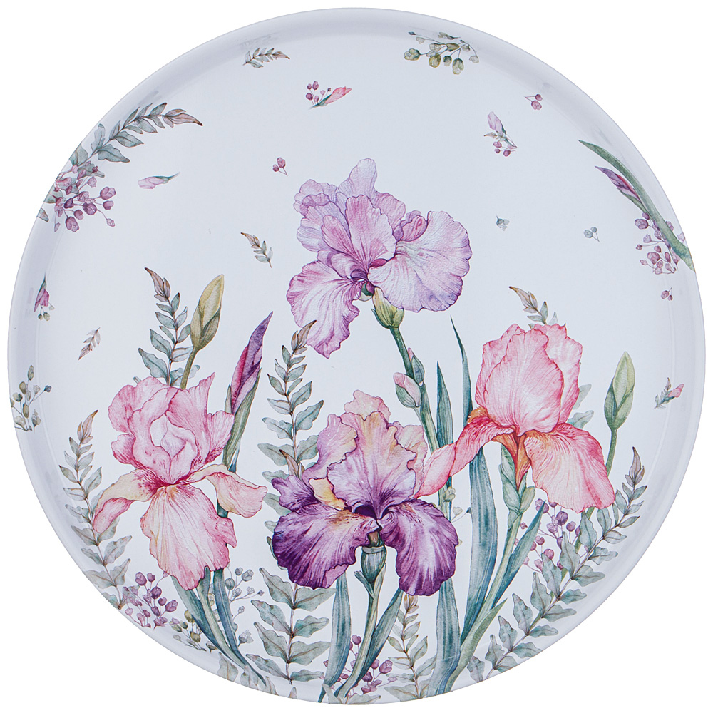 Поднос 33*2,1см "Irises"Поднос - это необходимый предмет для организации сервировки стола.Поднос имеет оптимальную круглую форму диаметром 33 см и удобные для переноса содержимого приподнятые стенки высотой 2,1 см.Заключаем договора по 44 ФЗ, 223 ФЗ
