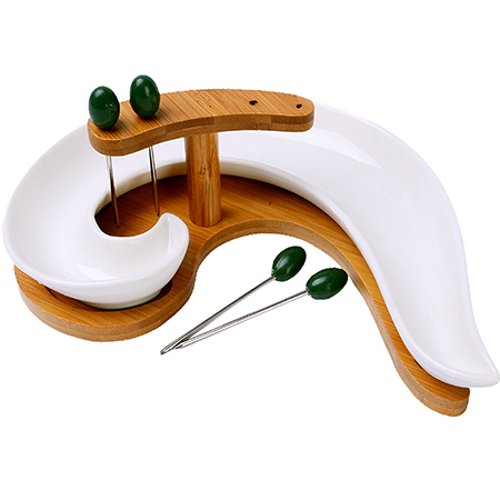 Набор: менажница 1 шт, подставка - 1 шт, шпажки - 4 шт, держатель для шпажек - 1 шт.
