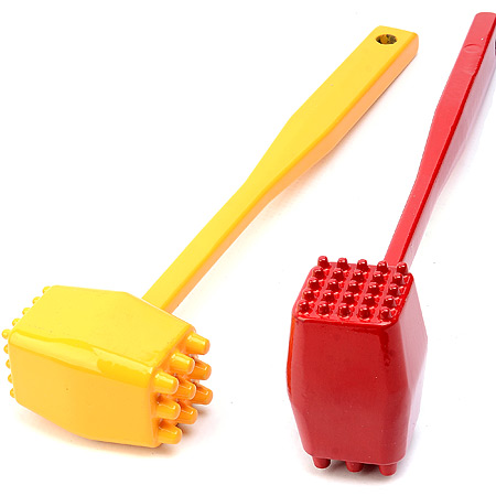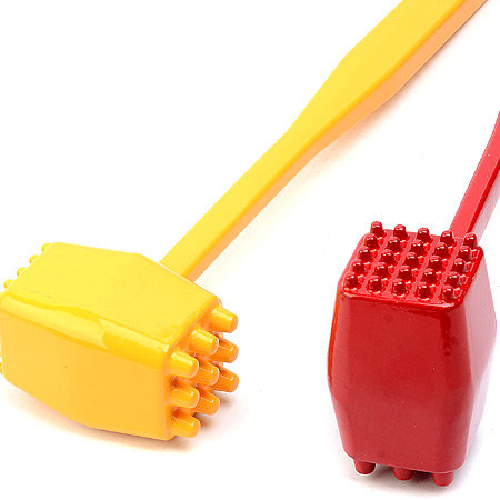 Выполнен из высококачетвенного алюминия с прочным цветным покрытием. Рабочая поверхность молотка имеет две стороны: с курпными зубцами и мелкими.