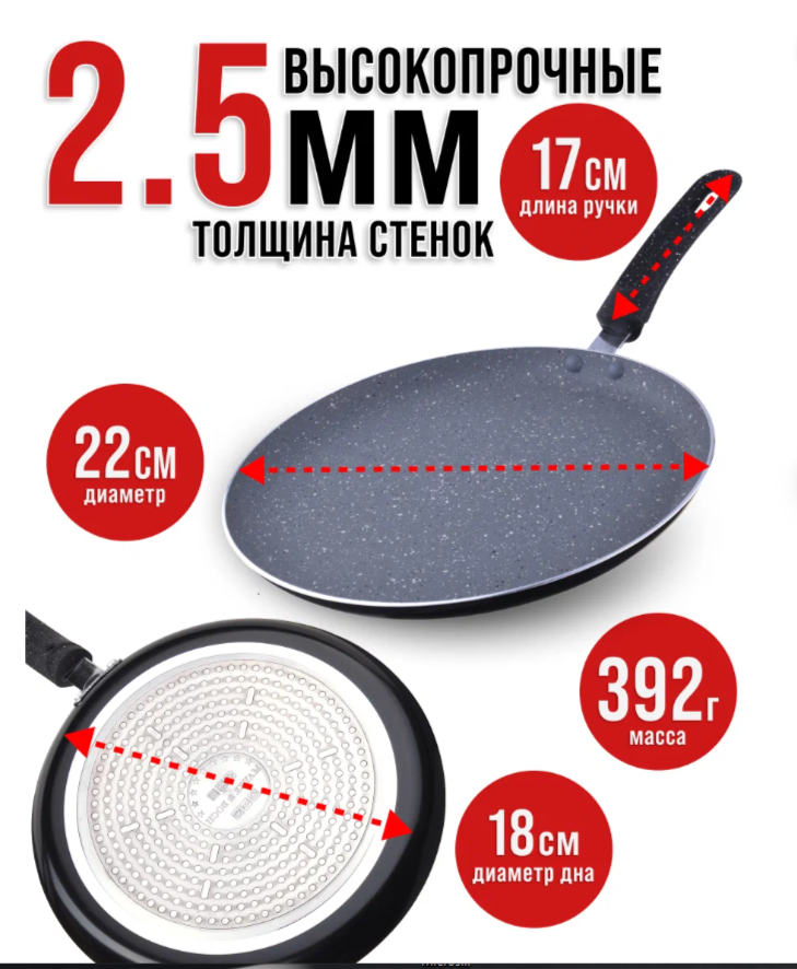 АКЦИЯ 543р. 2300р.25687 Блинница 22см мрам/кр АП индукц/дно MB (х12)