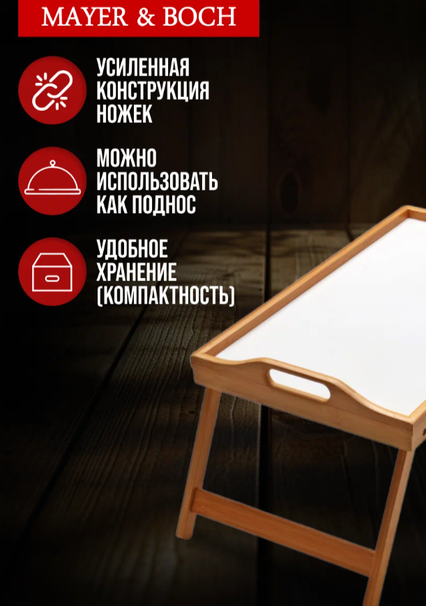Отзывы и вопросы о товаре « АКЦИЯ 889р. 2300р.27359 Столик для завтрака 50х30см Бамбук MB (х8)»