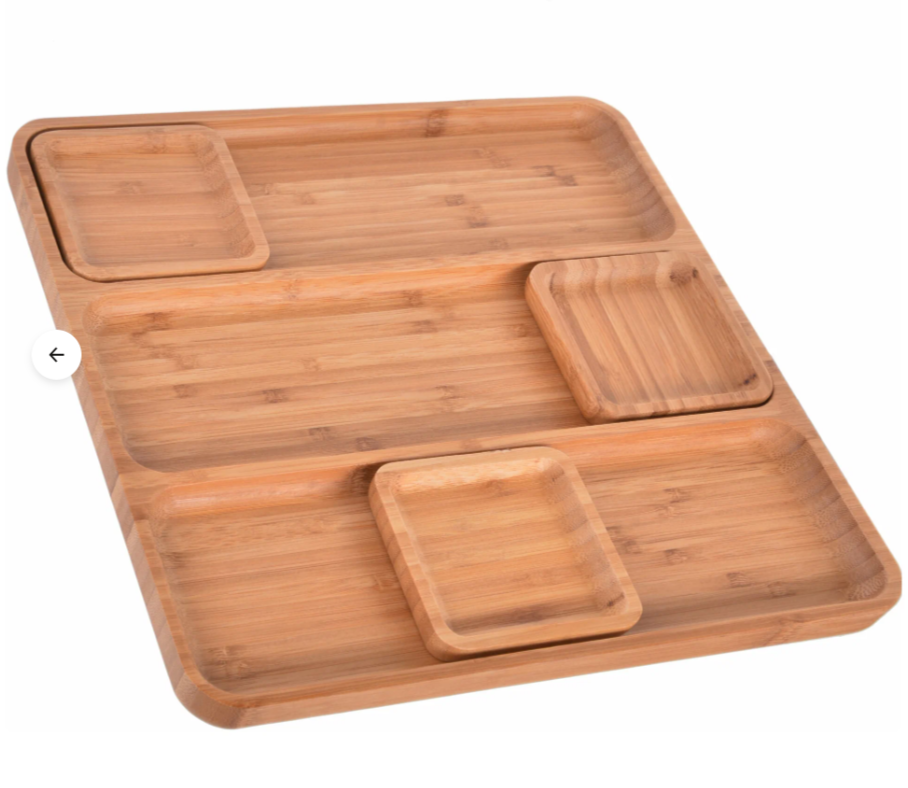 Размеры подноса-менажницы: длина 32 см, ширина 32 см, высота 2 см.