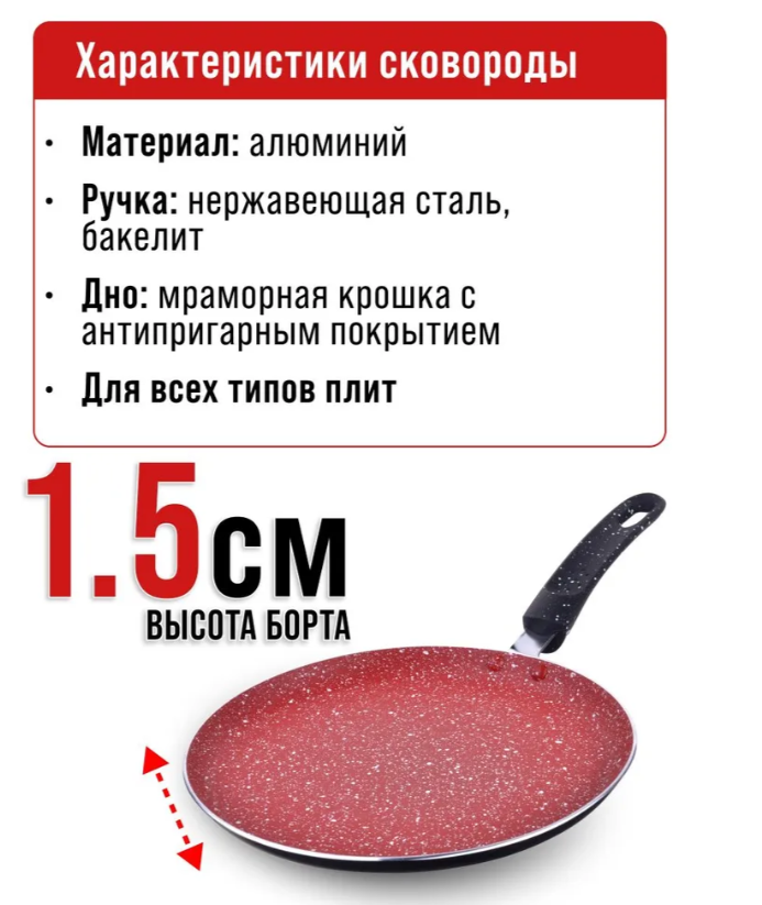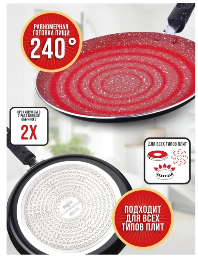 АКЦИЯ 410р. 2400р.28340 Блинница 20см мрам/кр АП индукц/дно MВ(х12)