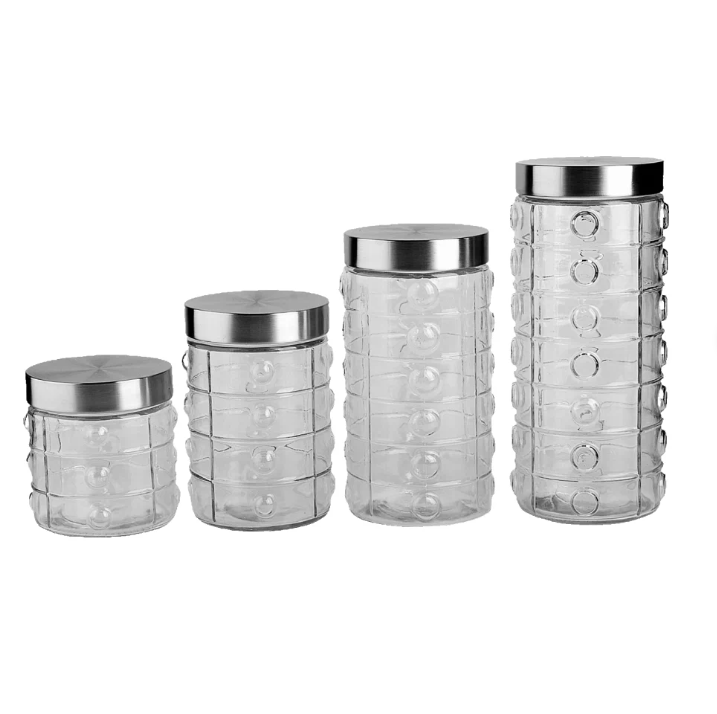 Набор банок для сыпучик продуктов 4пр стекло/нерж/ст MB (х4).